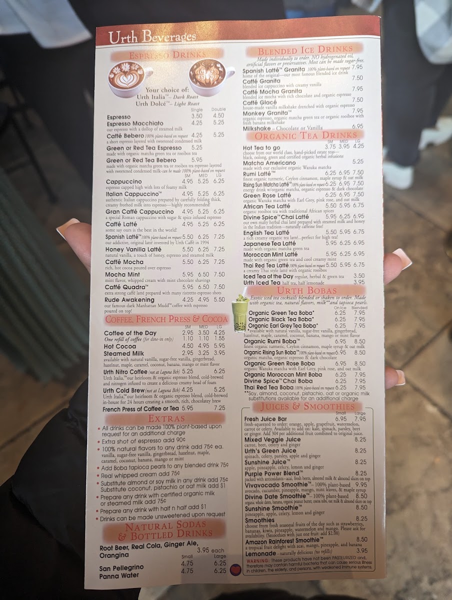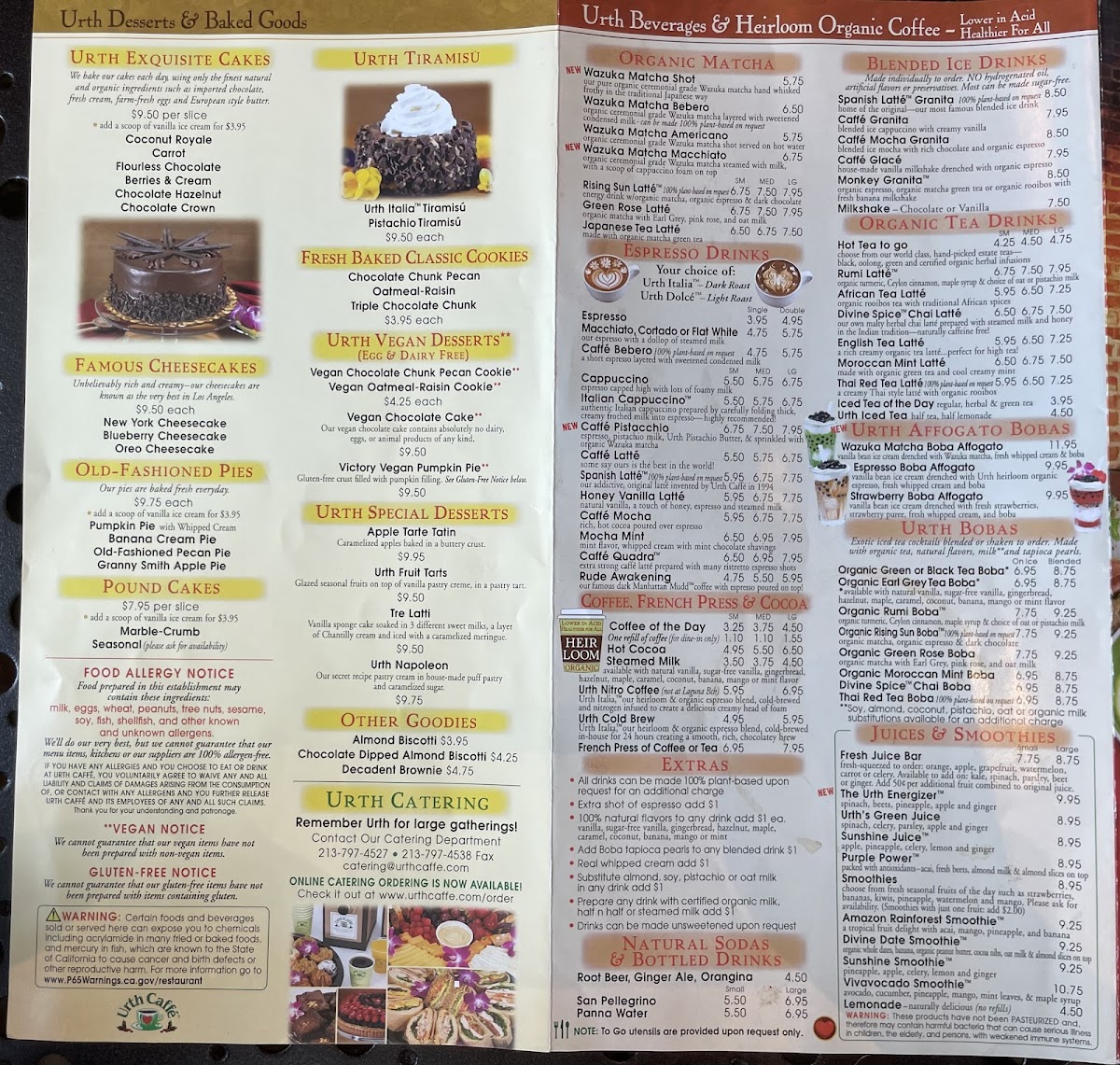 Before you leave, don't miss out on their freshly baked goods and unique blends of coffee, which have garnered praise for their quality. In a bustling area where a quick coffee might leave you compromised on flavor, Urth Caffe stands out as a go-to destination for those who appreciate the art of good coffee and delicious food.